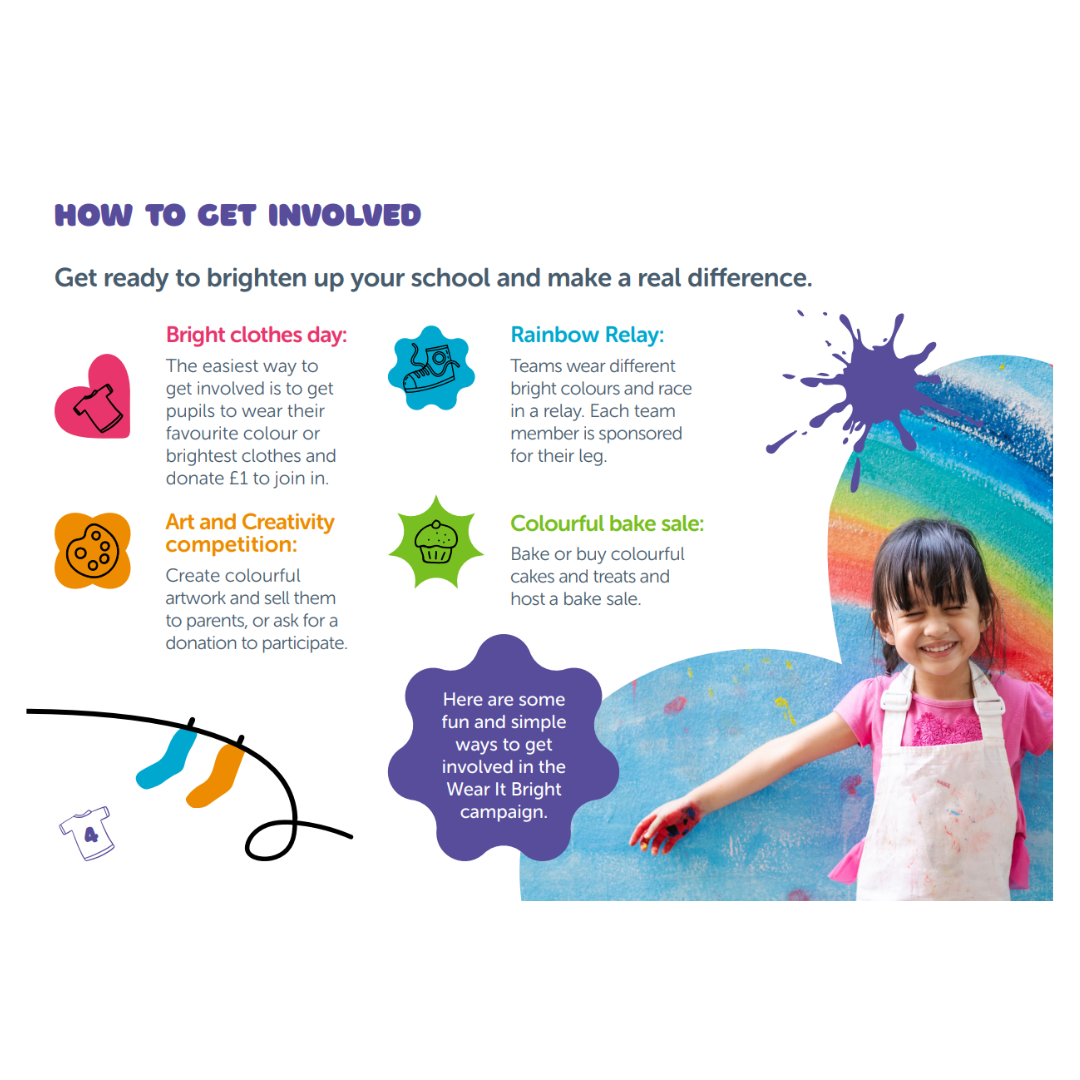 Wear It Bright brings the same spirit to schools. One day of colour, joy, and self-expression shows young people that their wellbeing matters, encouraging positivity, creativity, and connection in their everyday environment.
